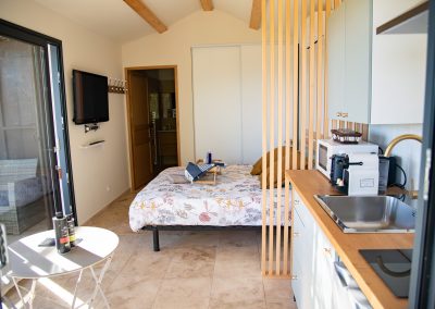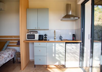 – un coin salon et un coin cuisine toute équipée