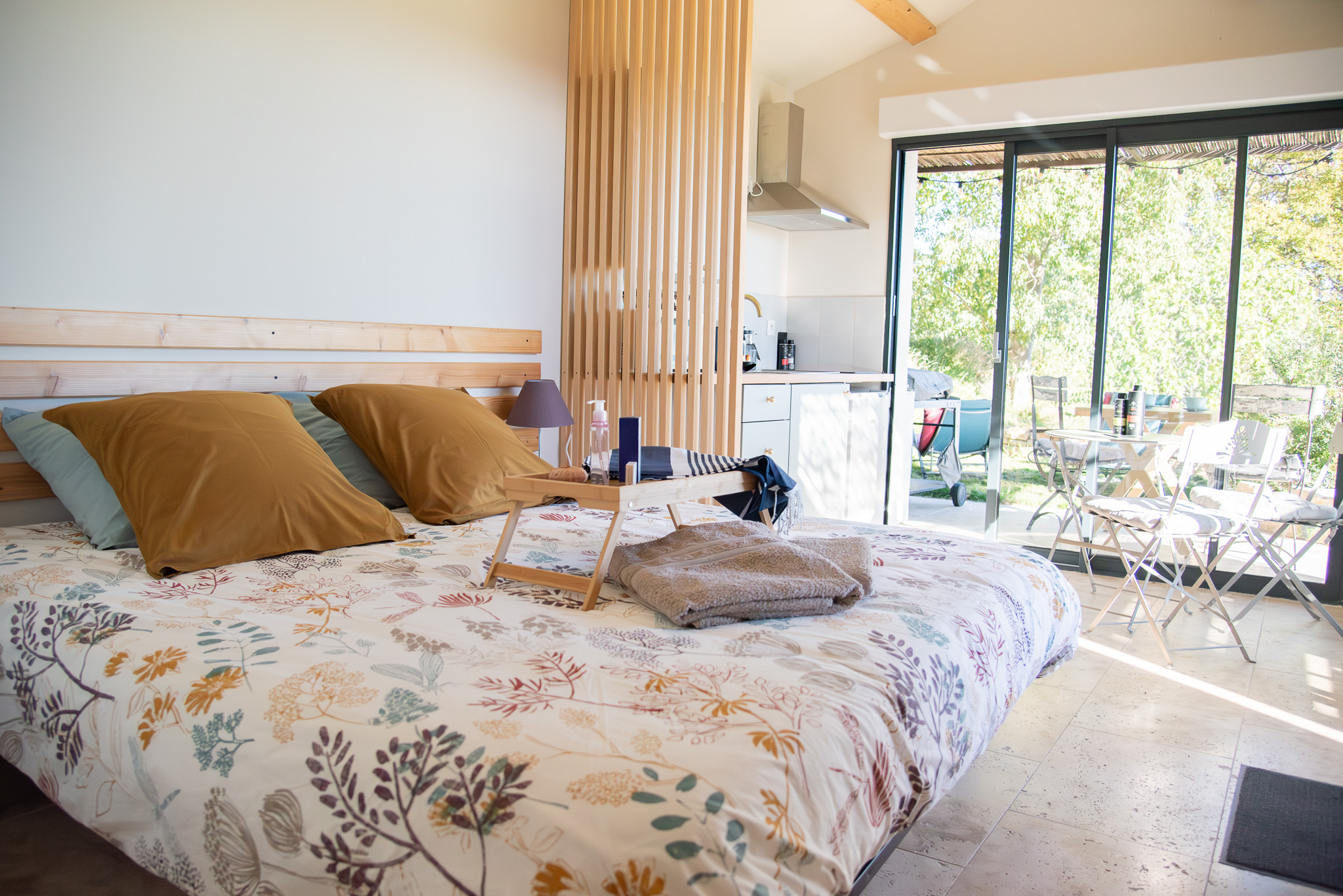 - Un lit King Size (180cms) - Une climatisation - Un espace extérieur avec un salon de jardin et un barbecue.