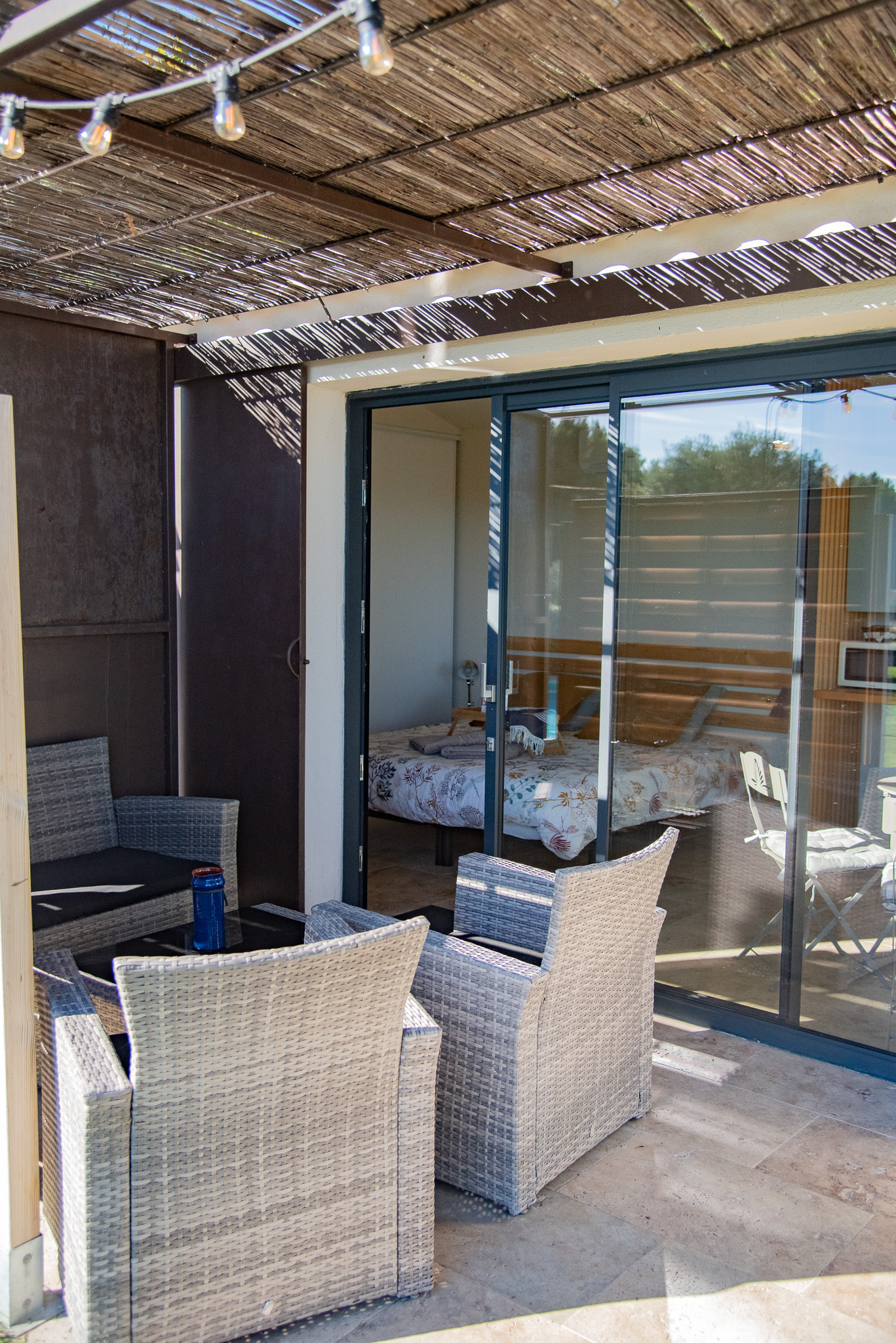 – un espace extérieur privatif au pied d’un olivier centenaire avec salon extérieur, barbecue, table à manger